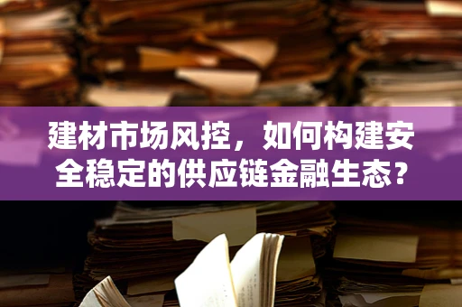 构建安全稳定的建材市场供应链金融生态,需从信用评估、交易透明度、资金监管等多方面入手,以科技为驱动,实现风险的有效防控和供应链的可持续发展。